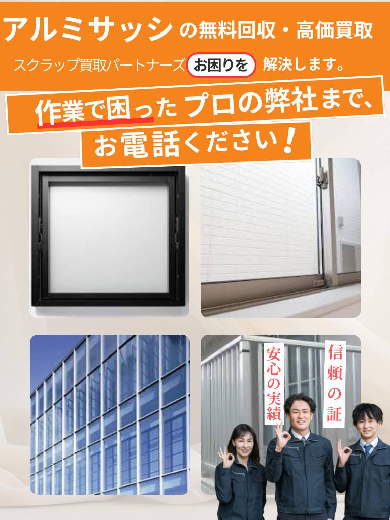 窓、玄関ドア、引戸、手すりなど、様々なアルミ建材を買取しています。
