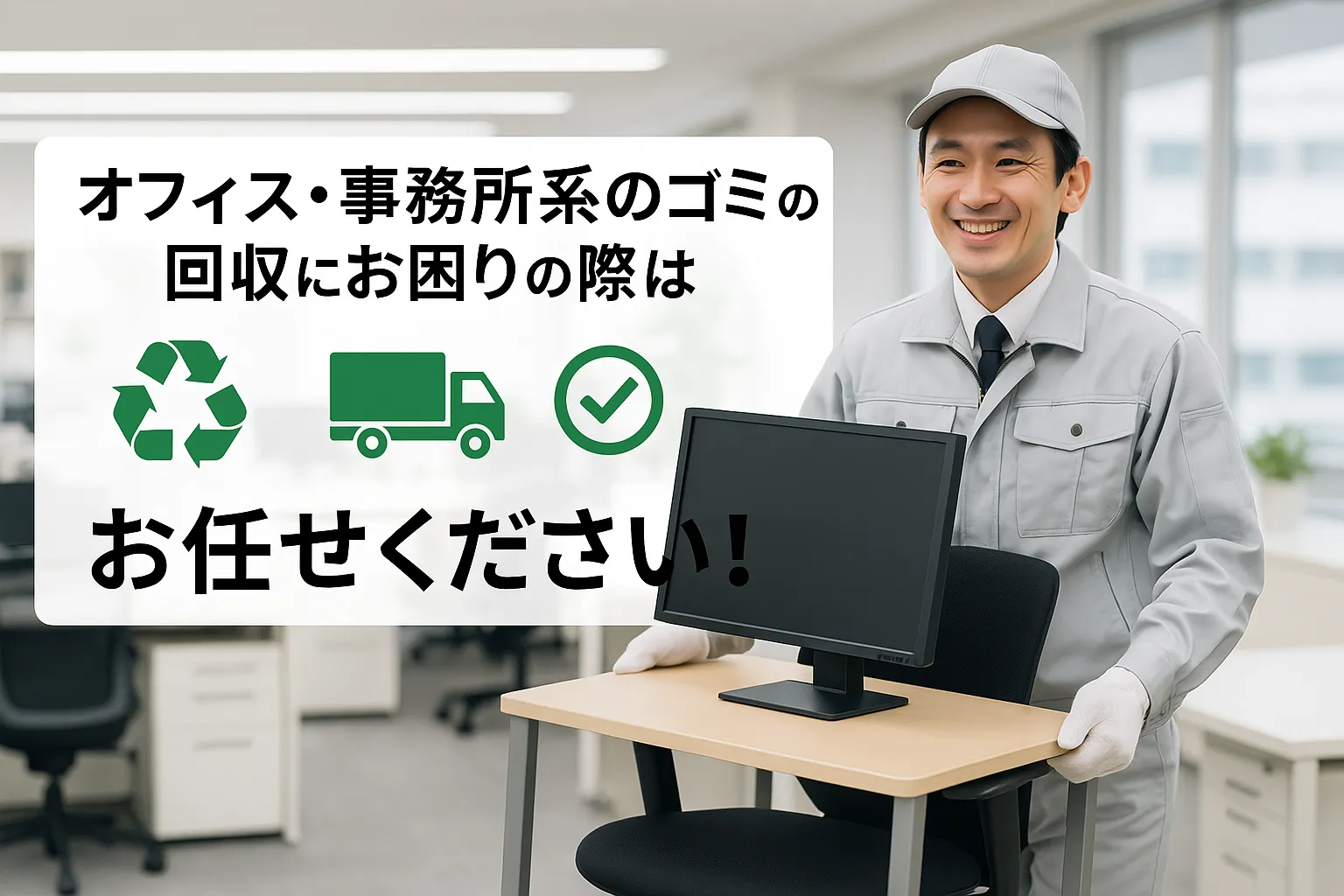 オフィス ごみ処分、事務所 廃棄物処理、機密文書 処分、書類 廃棄、オフィス家具 処分、OA機器 廃棄、事務用品の処分などオフィス・事務所系のゴミの回収にお困りの際はお任せください!