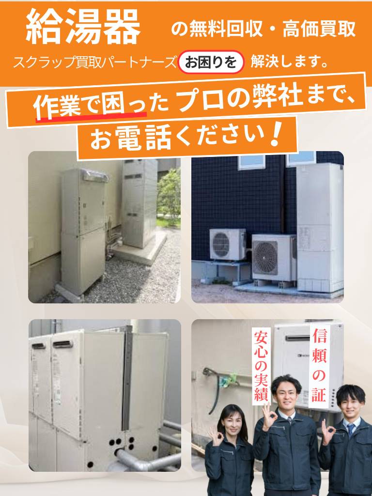 戸建てやマンションで使われる一般的なガス給湯器や灯油を使う石油給湯器を買取します。リンナイ、ノーリツ、パロマなど全メーカー対応。