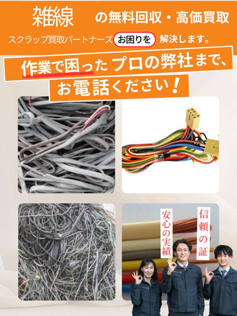 お電話、LINE、メールでお気軽にご連絡ください。雑線の種類やおおよその量、ご希望の訪問日時などをお知らせください。